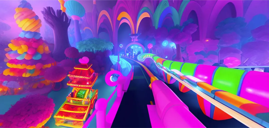 Once we had to pitch ideas to a cake shop business; it took our VFX artists about 4 hours to generate whimsical-neony-Willy Wonka-style 360-degree panoramas. If it wasn’t for Midjourney assistance, the process would’ve taken a dozen times longer.