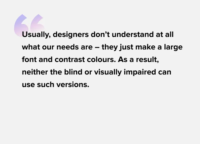 At a meeting with the JetStyle team, he told us how designers and developers can make the life of visually impaired people easier and more comfortable. Mikhail shares key points: