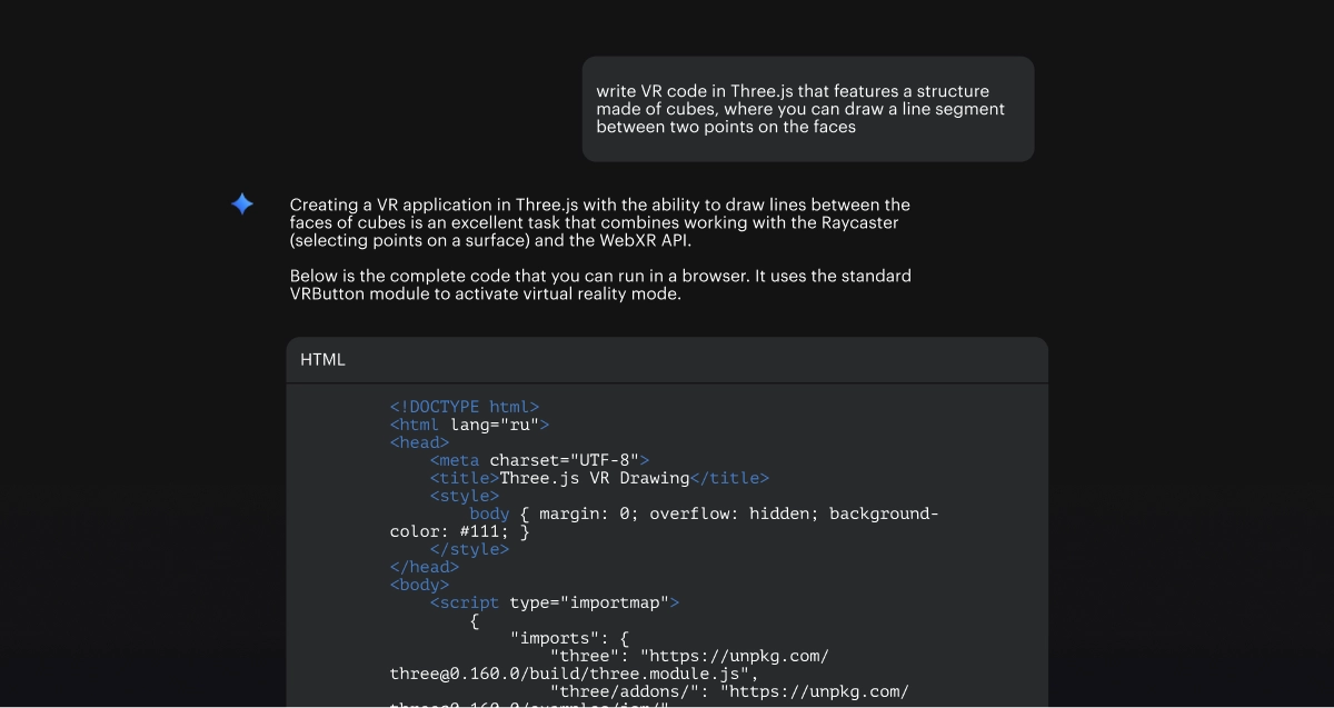 This makes small experiments much easier to start. A designer can take an idea such as “make a VR prototype where a user selects two points to align a model” and get a working first version quickly. It’s really something specific enough to test the logic of the interaction.