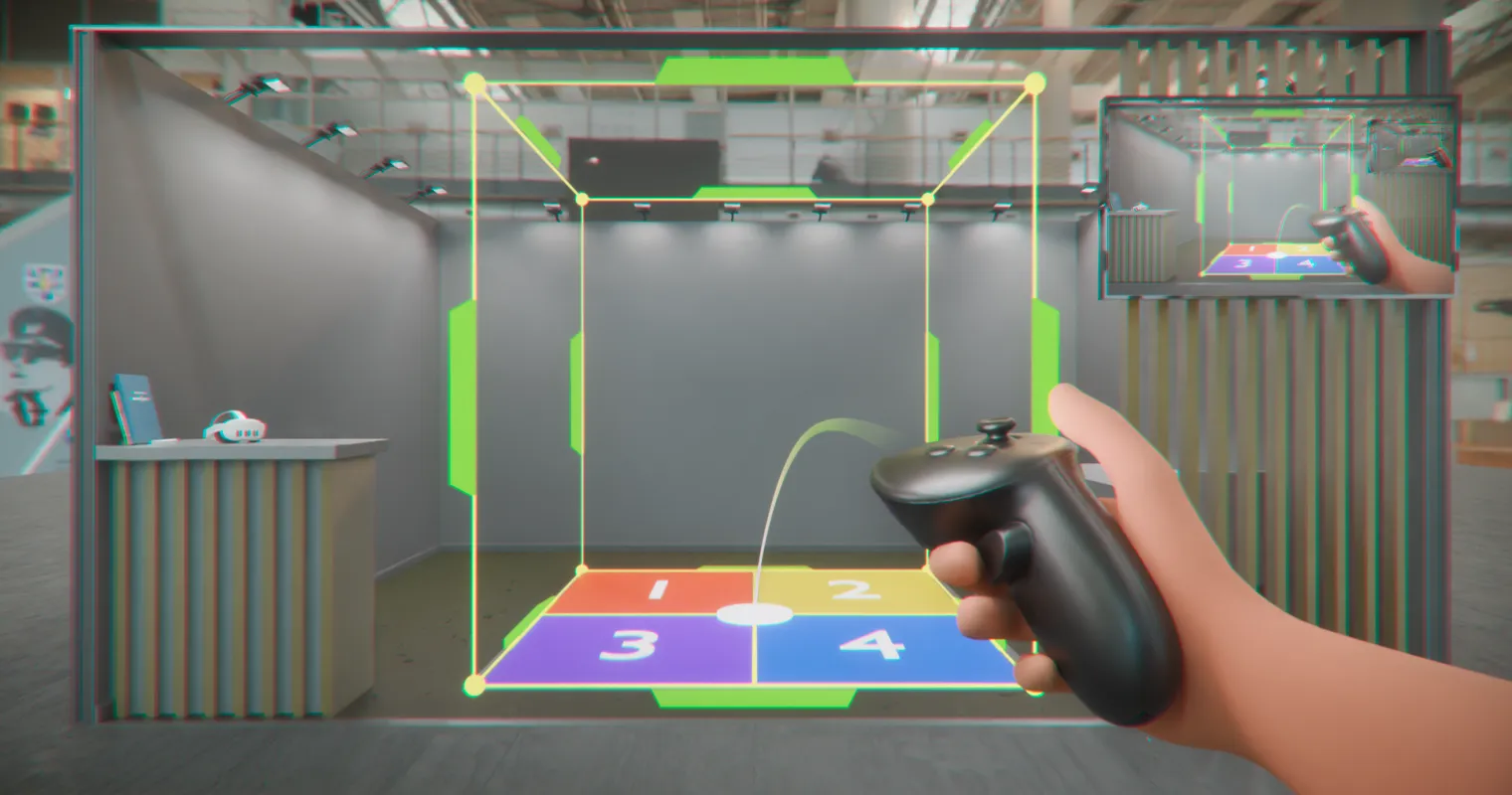 Your team member puts on the headset. In a few clicks they create the boundaries of the VR booth. The place is ready to welcome visitors.