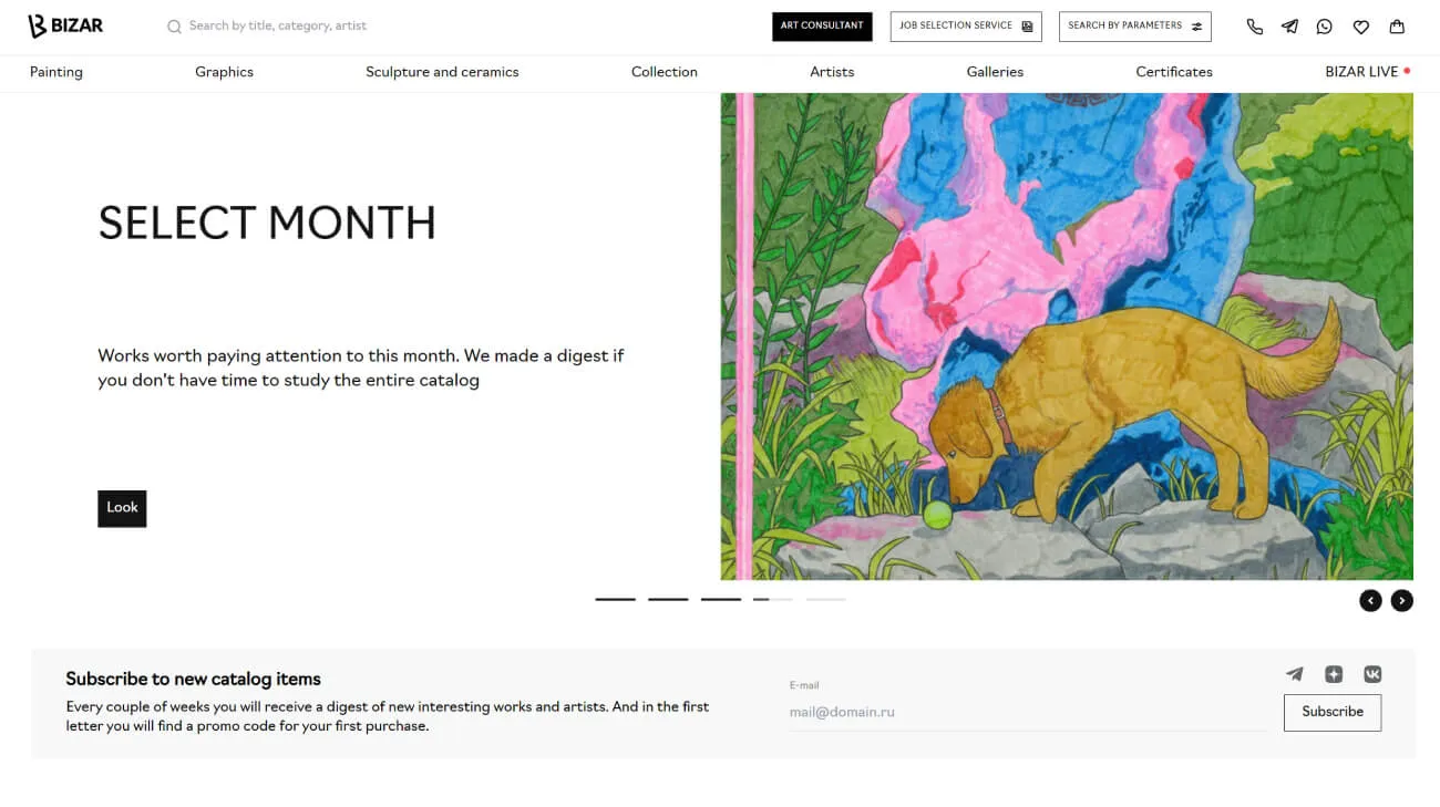 Marketplace of modern art. The website has a unique search and recommendation algorithm and convenient payment system
