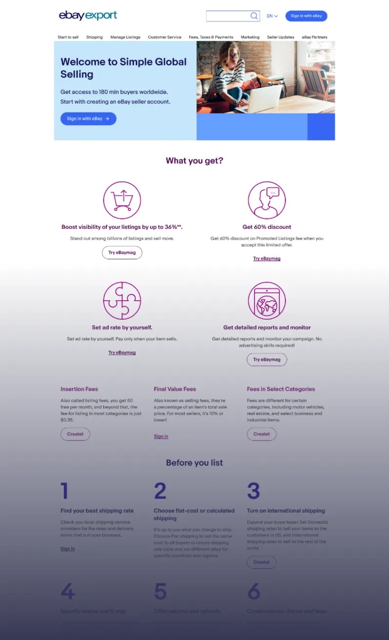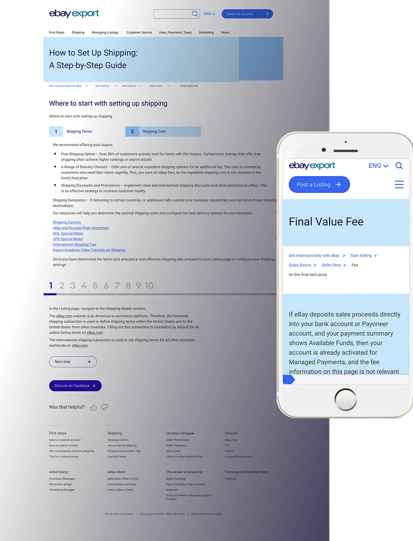 export.ebay.com our first task was to organise all available information on one portal to help sellers from our region successfully develop export sales worldwide.