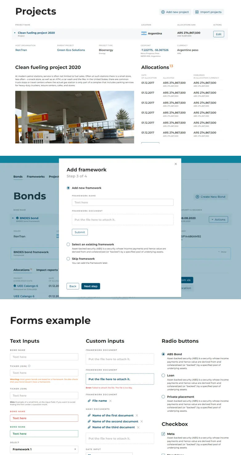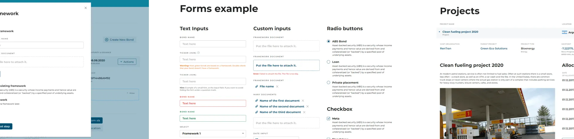 When we started working with the database, we realized that preliminary design components were not enough. Each bond is specific and requires separate functions to be correctly published on the platform. While the developer team were working on the development, we helped them with the design part and consulted them on the layout.